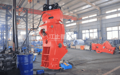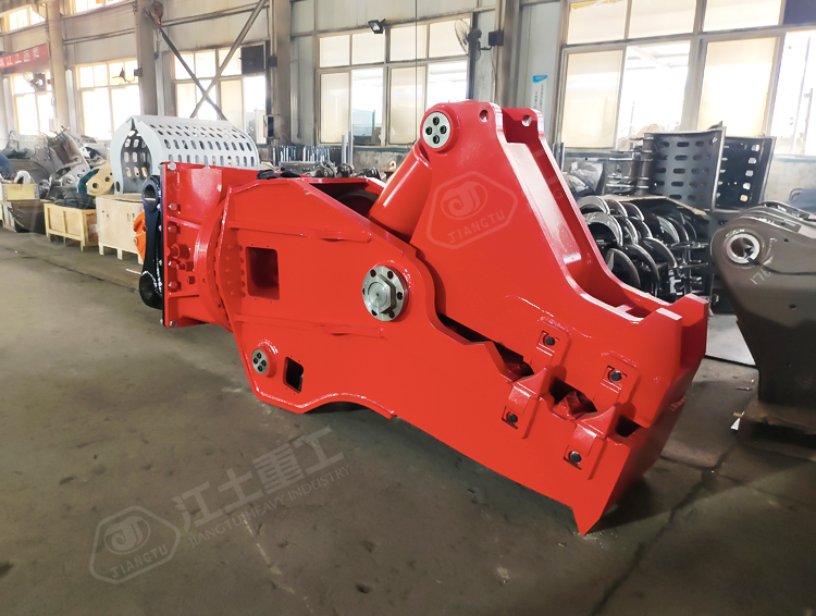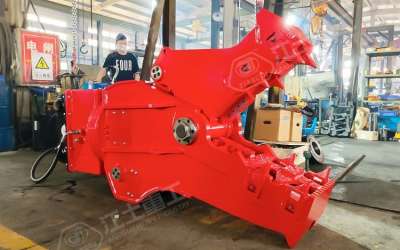 液壓粉碎鉗又(yòu)稱破碎鉗,是挖掘機前端屬具的一種,可以將(jiāng)混(hún)凝土塊、柱等打(dǎ)碎並剪切和收集裏麵的鋼筋,被廣泛應用於大樓、廠房梁柱、民房等建築的拆除、鋼筋回收(shōu)、混凝土粉碎等。