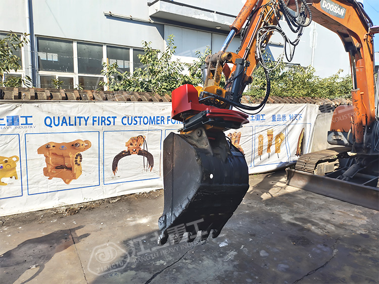 國內屬具要想使用國外的液壓手(shǒu)腕必(bì)須搭配他自己的連(lián)接器(qì)或專屬轉接頭,這樣會增加屬具的高(gāo)度,容易造成挖機挖掘力的損失,增加油耗。