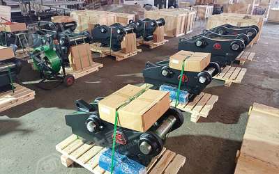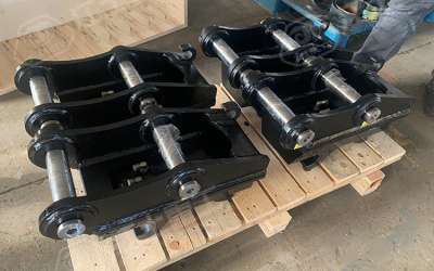 5. 在組、焊、鏜的高(gāo)精準度工藝下(xià),以常規06級連機器的開檔250-260mm為例,將前端活動虎口(kǒu)加(jiā)寬到245-255mm,也就是比開檔減5mm,以此類推,做到掛錘子或挖鬥時單邊2.5mm的(de)間隙,防止間隙過大磨損過快、防止錘子活套(tào)掉出。