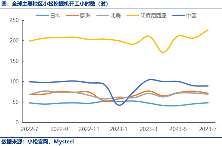 7月中國小鬆挖掘機開工小時數連續四個(gè)月下滑