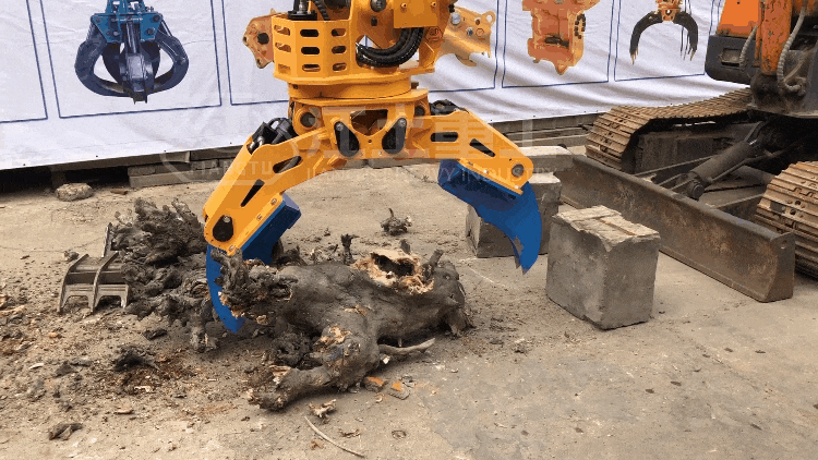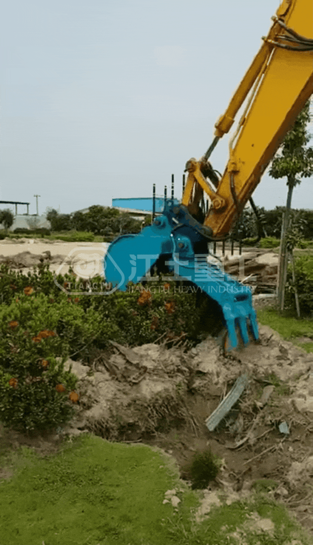 多功能挖剪(jiǎn)一(yī)體機,將(jiāng)土壤中的樹根切割、劈開並提取出來。它通常被用於清除樹木根部,以便進行土地清理、建(jiàn)築(zhù)、道路施工、城市規(guī)劃(huá)、園林改造等任務。這種屬具能夠有效地從土(tǔ)壤中把樹木根部剝離出來,以便後續工(gōng)作和開發。