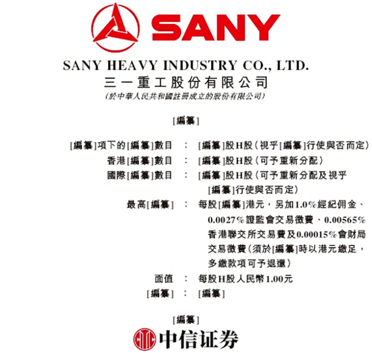 三一(yī)重工向港交(jiāo)所提交上市申請書,衝擊A+H