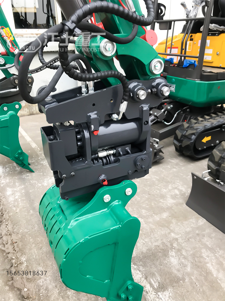 這(zhè)款產品最主要的(de)特點是可以帶動挖鬥等主要屬具擺動至180度,類似夯等屬具可擺動至140度。