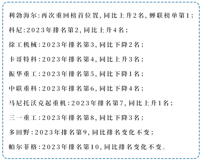 2023 12-27【行業動態】:全球最大起重(chóng)機製造商20強發布,中國企業排名下降,湧入全球舞台勢(shì)在必行 近日,英國KHL集團(tuán)發(fā)布了2023年ICm20“全球最大起重機製造商”20強排行榜(bǎng)。榜單顯示,20家上榜(bǎng)製造商總價值同比下降10.3%,創新曆史最大跌(diē)幅之一,其中四家(jiā)中國... 查看(kàn)更多