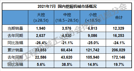 2021年7月挖掘機械行業數(shù)據快報