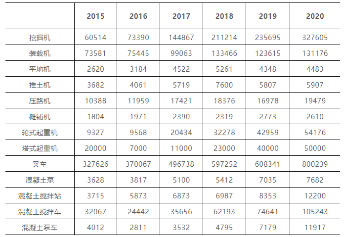 協(xié)會統計的工程機械主要(yào)產品銷量(liàng)“十(shí)三(sān)五”期間均大(dà)幅度增長。